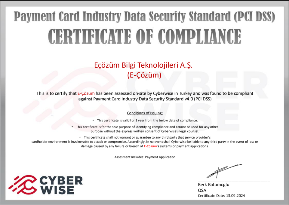 TLS ECC 256-bit certificate and AES 256-bit key are used for the security of credit card information, and payment and collection transactions can be carried out securely with the 3D secure feature. The hardware on which the software runs is protected by 3-layer security systems and 3-layer backups are made.